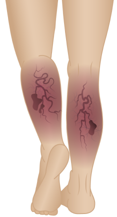 En la subcompensación tardía de las varices, el estado del sistema venoso es motivo de gran preocupación. Los síntomas son visibles a simple vista y afectan a la actividad diaria. En esta etapa, se altera el flujo inverso de la sangre en las venas, lo que puede provocar complicaciones: inflamaciones purulentas, úlceras tróficas, etc.